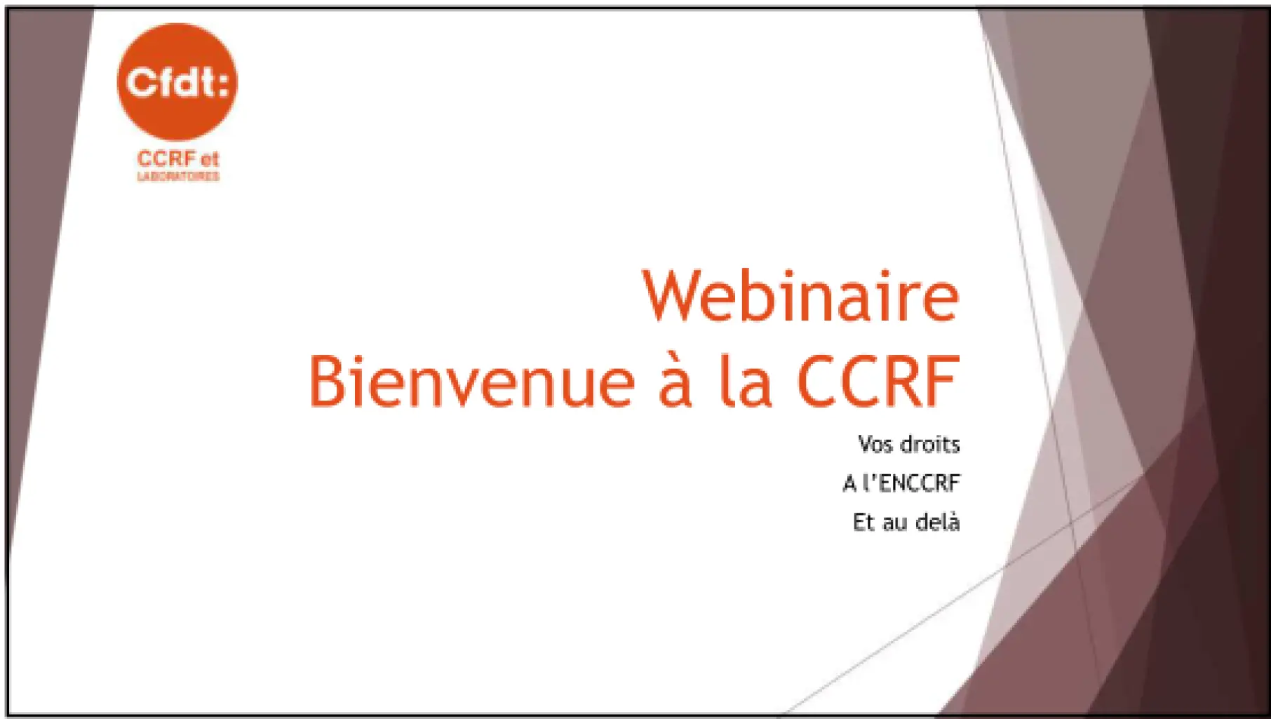 Sur le modèle de celui proposé par nos collègues des finances publiques, le webinaire d'entrée à l'ENCCRF proposé par la branche CCRF & Laboratoire de la Fédération CFDT des Finances à nos nouveaux collègues avait vocation, avec humilité, de leur apporter des précisions sur le cadre juridique qui encadre leur formation ainsi que l'affectation à venir.