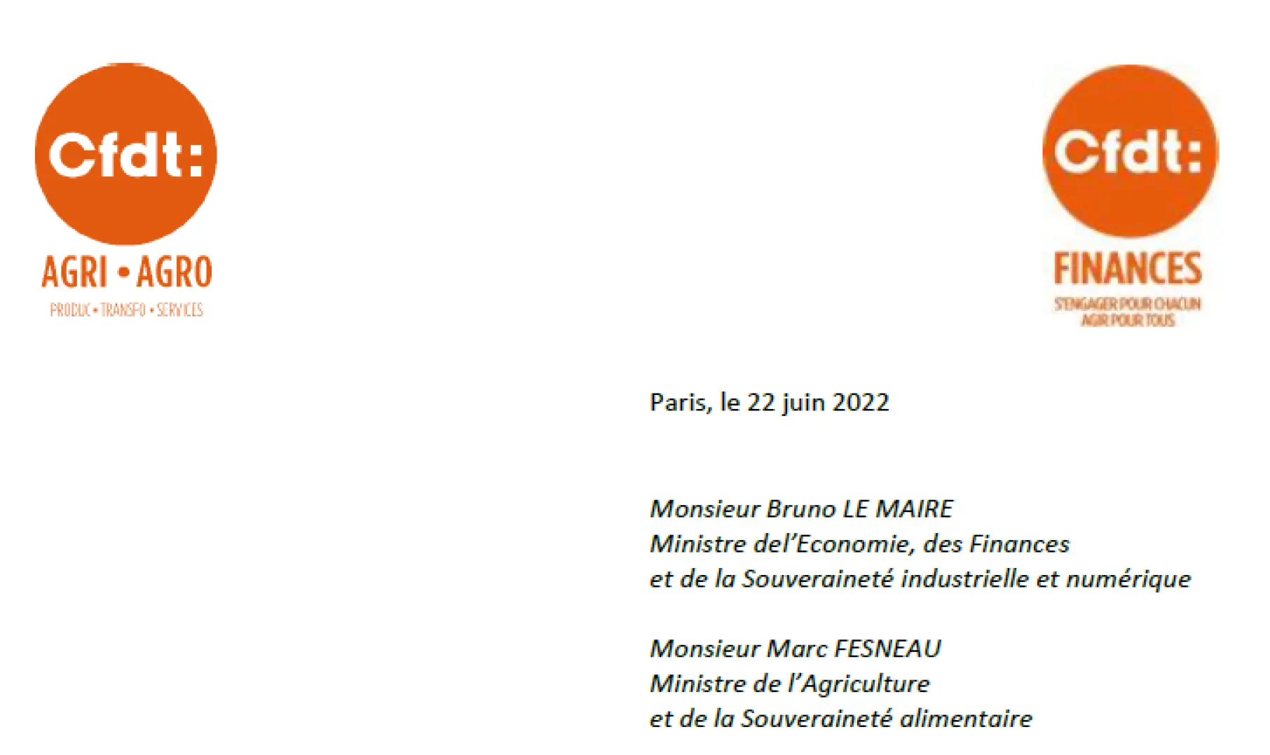 Transfert de la sécurité sanitaire des aliments : deux fédérations CFDT écrivent un courrier commun à leur ministre