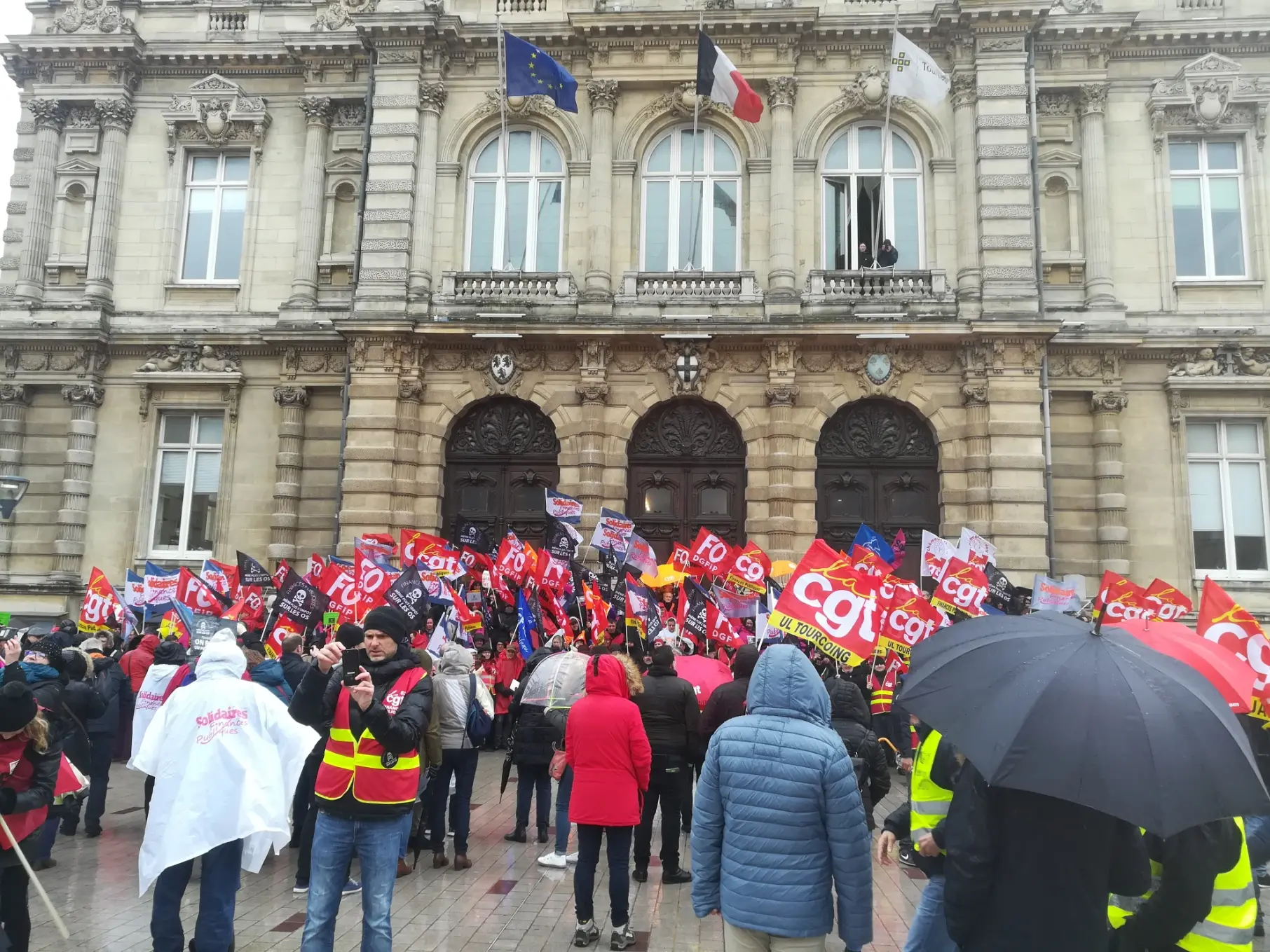 Dans son fief de Tourcoing, le ministre Darmanin a quant-à lui eu droit à une visite de nombreux agents, accompagnés de représentants du personnel. L'intersyndicale CFDT-CFTC, Solidaires, CGT, FO est venue redire les fortes inquiétudes des agents sur l'avenir de la DGFiP et de ses missions, rappeler -à l'heure de la "géographie revisitée"- l'importance du maillage territorial de notre administration, notamment pour les usagers les plus fragiles ou les plus éloignés, sans oublier l'impact sur les conditions de travail des agents qu'ont les incessantes "réformes" et suppressions d'emplois dogmatiques.