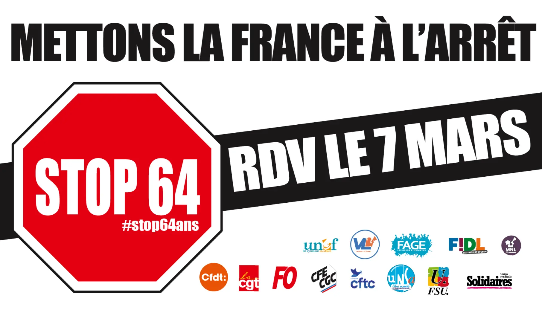 Ensemble, dès le 7 mars, mettons un coup d’arrêt à ce projet de réforme des retraites inacceptable, injuste et injustifié.