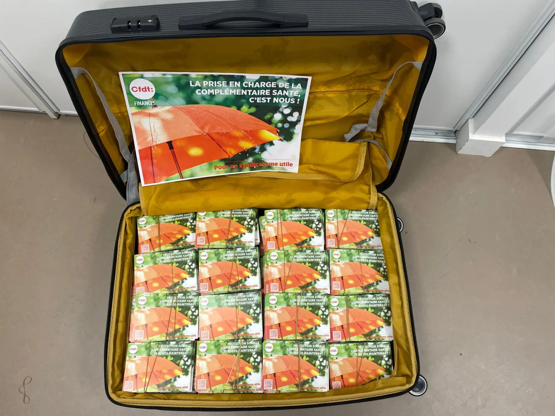 La CFDT Finances apporte ce jour à la ministre des comptes publics une valise de 5000 cartes pétitions signées par les agents des ministères économiques et financiers sur tout le territoire. Nous revendiquons une allocation forfaitaire à 30€ par mois en attendant la mise en place de la PSC